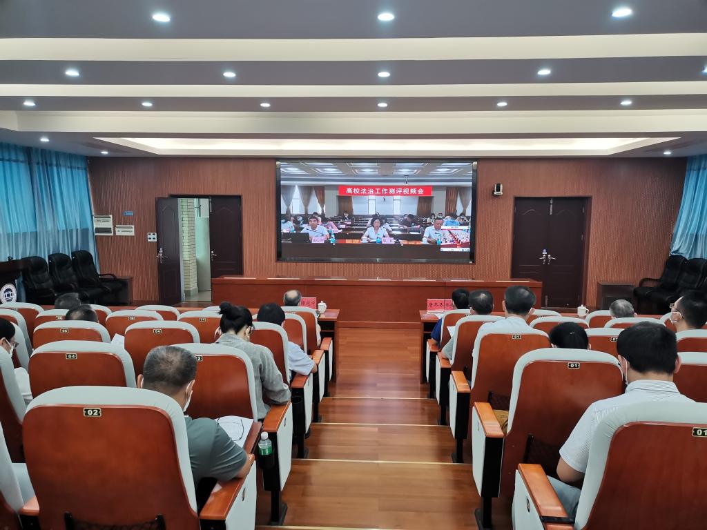 7月8日,广东省教育厅召开全省高校法治工作测评视频会,省教育厅副厅长那佳主持会议并作讲话。必赢565net官网在行政楼第二会议室设置分会场,副校长唐冬冬出席会议,党委委员、党办校办主任谭冠中、相关职能部门负责人、法治办全体工作人员等参加了会议。