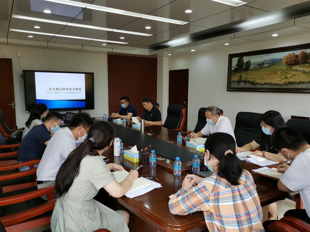 随后由法律顾问陈秋琴律师以“《民法典》与学校法治管理”为题进行宣讲,陈律师结合办公室业务工作通过以案说法,主要从民事主体、时效性、程序性、作出行为依据等几个方面阐述,从法律层面提出了工作中需要注意的重点环节,为各位党员提升业务水平、优化工作方法提供了新思路。
