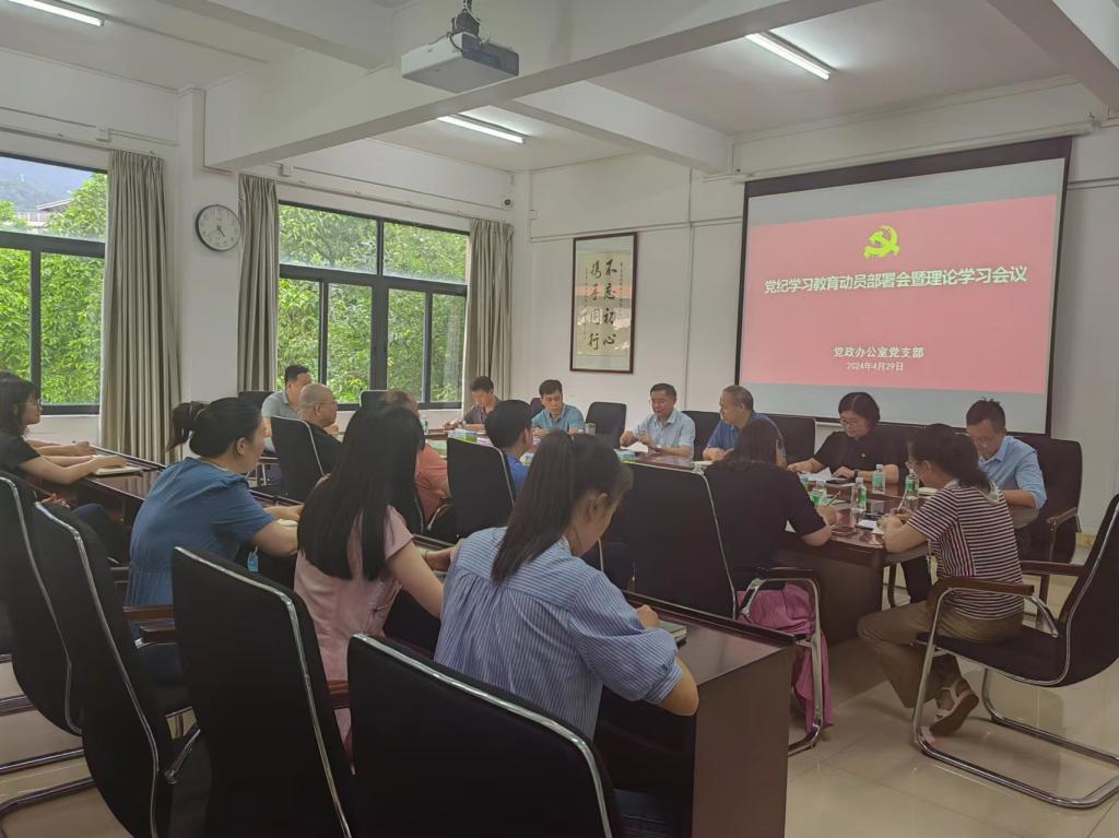 4月29日,必赢565net官网召开党纪学习教育工作动员部署会暨理论学习会议。支部全体党员参加了会议,学校党委副书记、校长吴业春以普通党员身份参加。