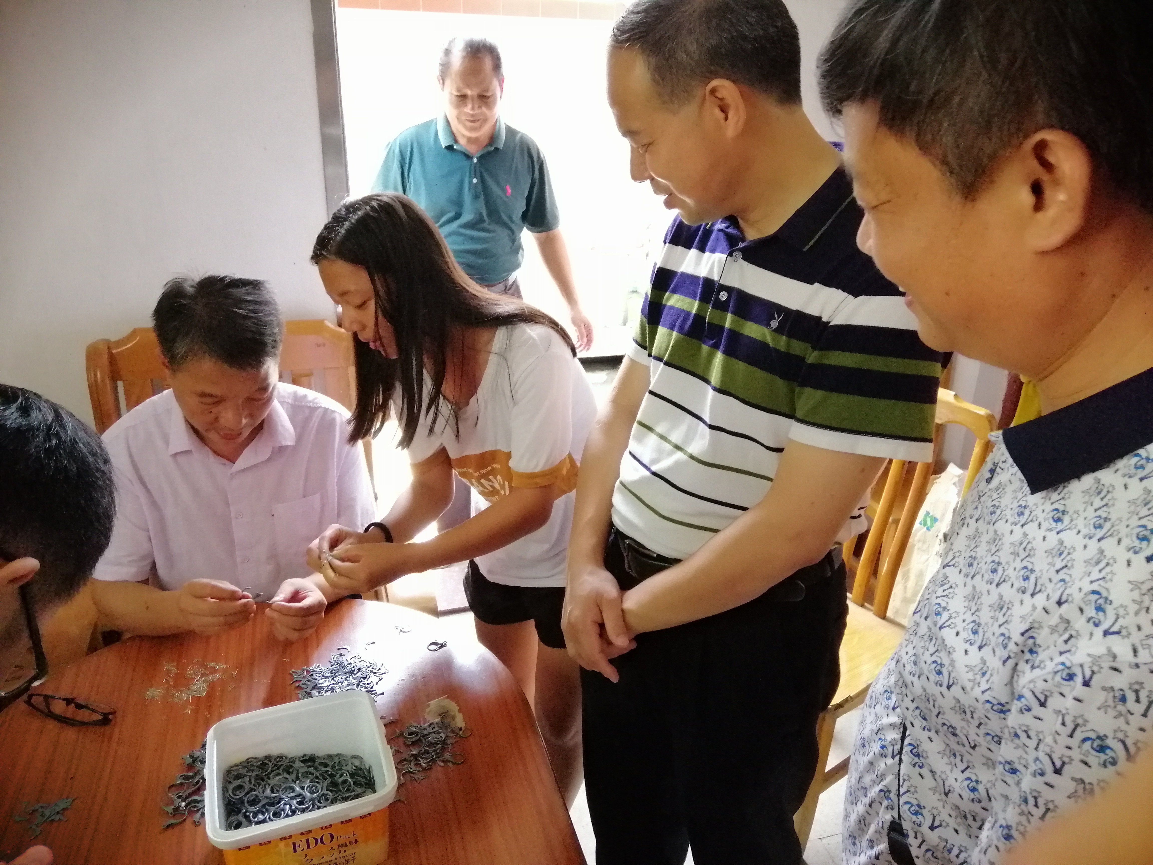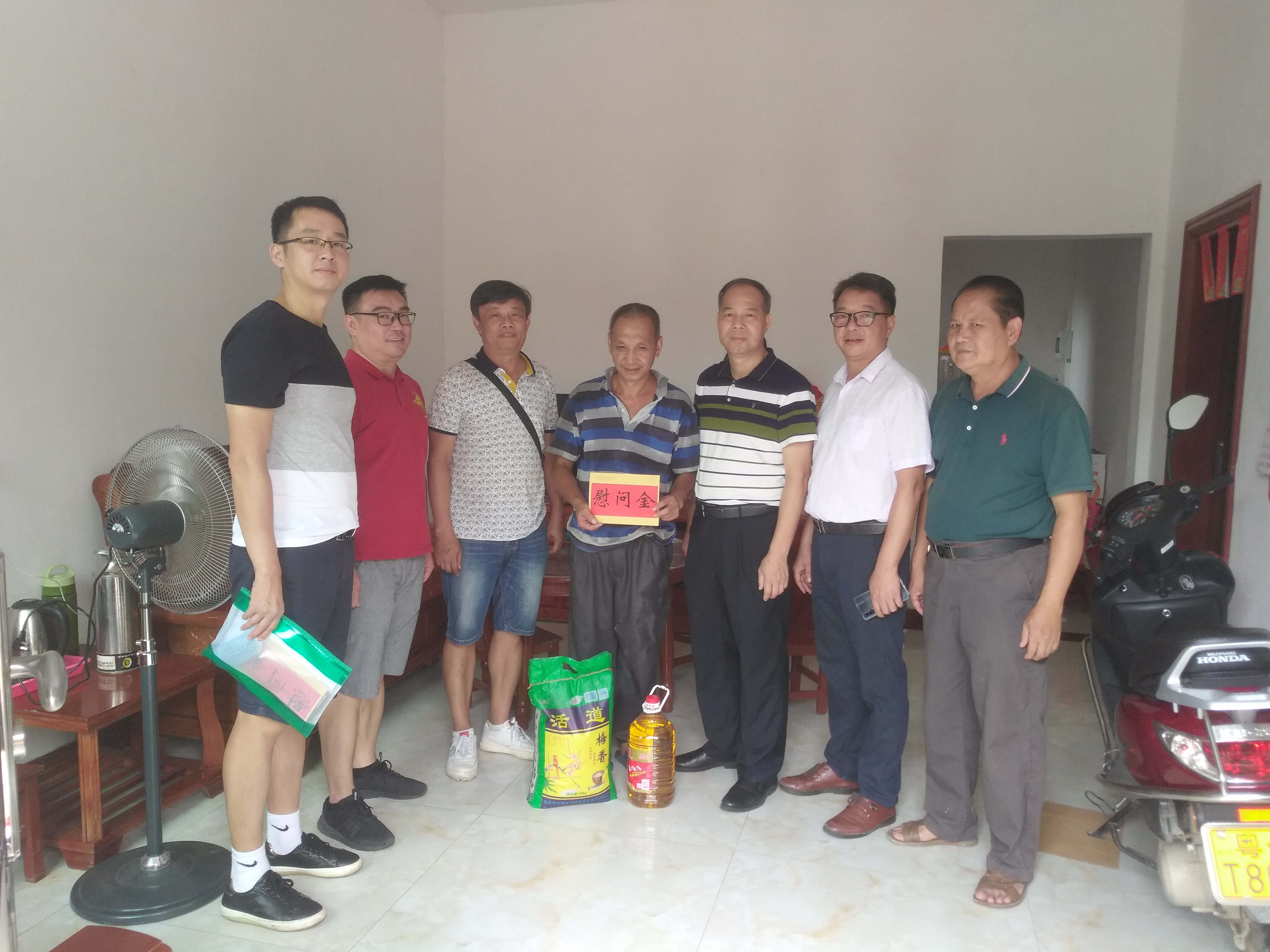 支部活动以两办主任谭冠中同志、副主任梁标同志、林晓忠同志与社区领导、村委会干部及必赢565net官网驻社区和驻村干部交流座谈拉开序幕,就对口帮扶贫困户的近况双方进行了深入访谈和了解。随后,党支部一行7人来到罗帷村看望慰问对口帮扶贫困户家中,深入了解他们的生活近况。当来到对口帮扶的贫困户谭洪祥家中,看到茶几上摆了一堆有待组装的钥匙扣,大家都很惊讶。原来这堆半成品钥匙扣是才考上大学的谭洪祥之女谭楚欣为补贴家用而做的暑期工。据了解,谭楚欣今年考入了罗定职业技术学院,学习自动化专业。谭冠中主任与其亲切交谈,鼓励谭楚欣继续努力学习新知识,掌握新技能,早日成为一名有真才实学,德才兼备的复合型人才。本次走访困难户,党支部分别与困难户在读的子女进行交流,关心他们的学习情况、职业规划,在慰问活动中,一个理念和愿景在默默传递:今天的广宁发展很快,但也面临着很多问题和困难,如生态问题、发展问题等,只有这些土生土长的大学生尽快、尽早的成才,共同来建设家乡,罗帷村的发展才有支撑,才有希望。无论走到哪,无论身处何方都应该心系罗帷,全力建设好罗帷,这是一个当代青年学子应有的初心和使命。