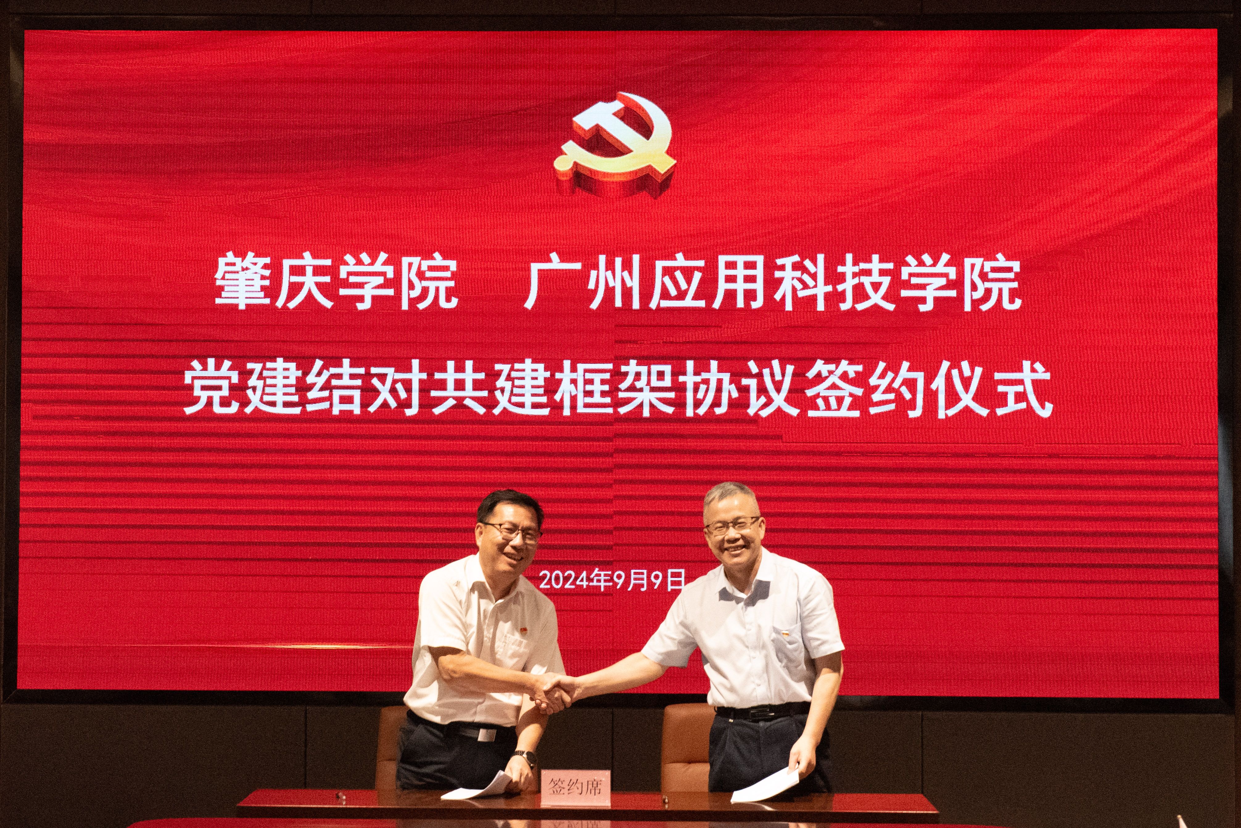 本网讯 9月9日,校党委书记谢冠华带领学校帮扶团队一行到广州应用科技学院,与该校续签党建结对共建框架协议,推动党建“组团式”帮扶升级至2.0版本。党委副书记欧洪湛、广州应用科技学院党委书记、督导专员王永云,执行校长张光宇,副书记、副校长刘志新出席签约仪式。